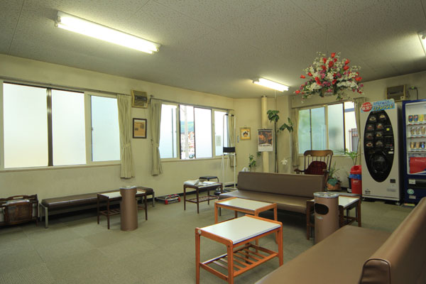 温泉で体が温まったあとは、こちらでのんびりしていってください。自販機、喫煙スペース、ぶら下がり健康器などもあります。時間を置いて何度も入るのが温泉湯治の正しい入り方。
